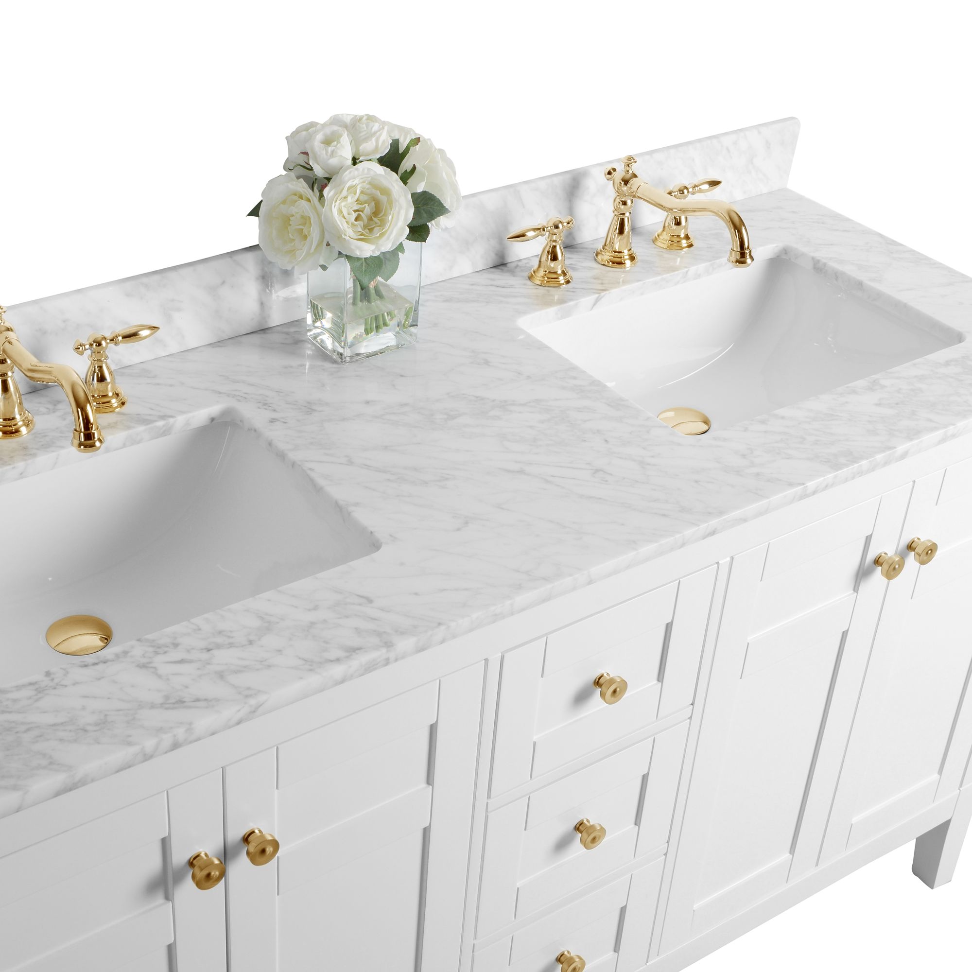 Maili 60 Wide Gold Hardware White Marble Double Sink Vanity
