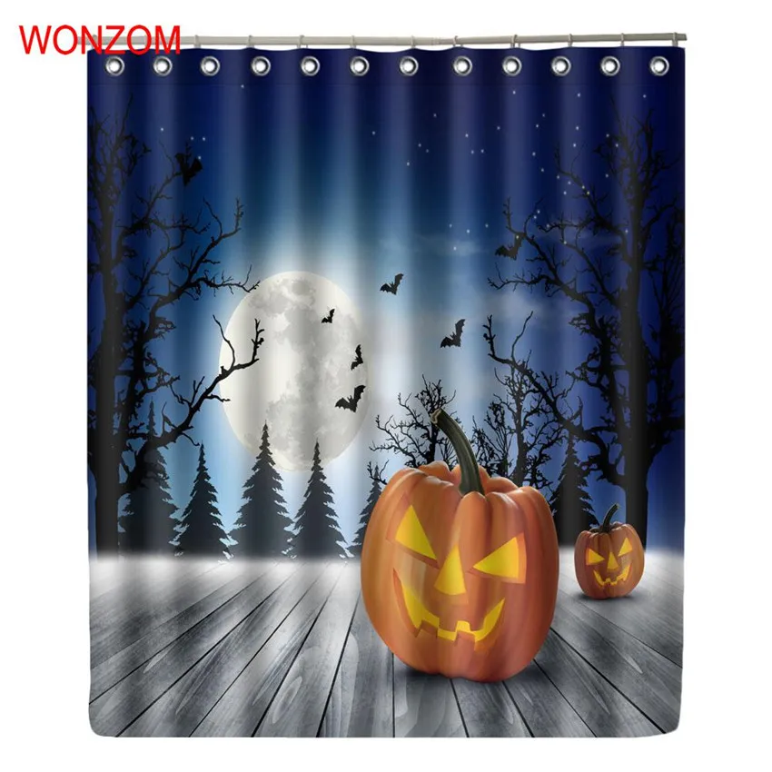 Amnysf halloween decor shower curtain pumpkin lanterns on rustic wood borad dark forest moon bats fabric bathroom curtains 70x70 inch waterproof polyester with hooks 4 8 out of 5 stars 76 16 99 16. It features pumpkins trees with fall foliage and a black natural buffalo. The most common wooden pumpkin decor material is wood.